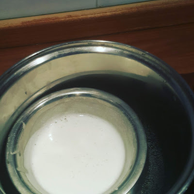Желатинът се разтваря във водата и се разтопява на водна баня.